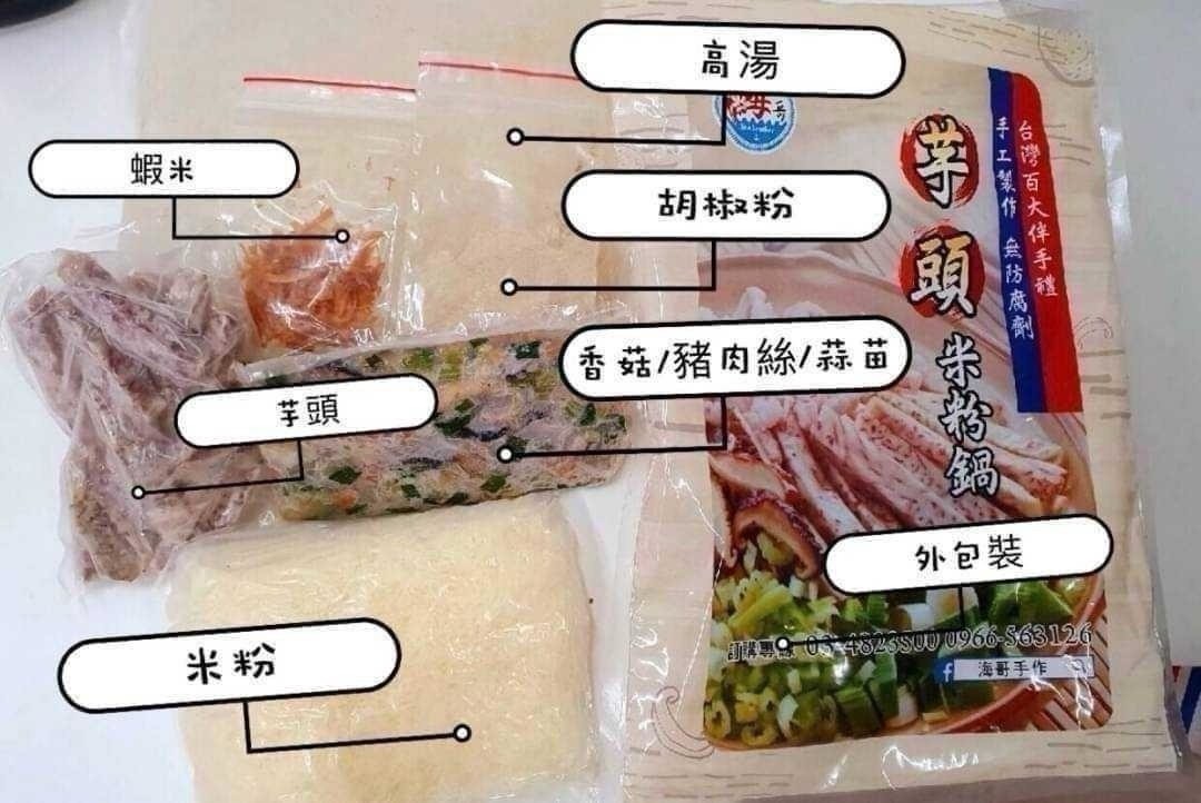🔴成分 : 芋頭、香菇、豬肉絲、蔬菜高湯、米粉、蒜苗、胡椒粉。