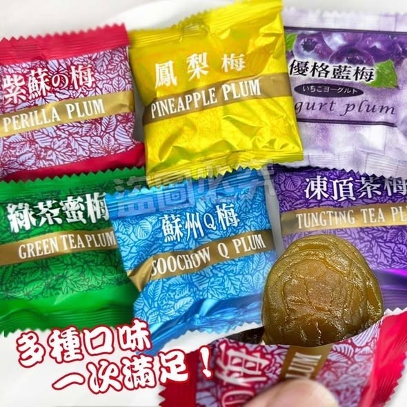 綜合梅:綠茶蜜、紫蘇、蘇州Q梅、優格藍莓、凍頂茶、鳳梨