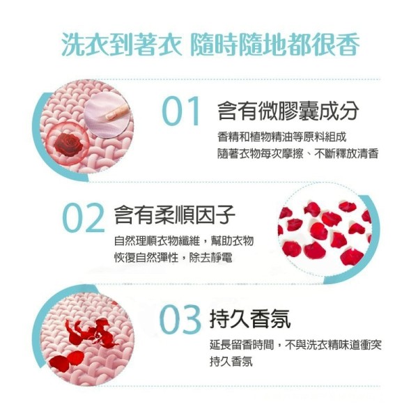 ✨香精和植物精油等原料組成,隨著衣物每次摩擦、不斷釋放清香