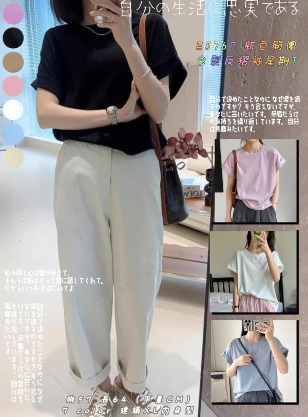 F12E-9658 直播同款 台灣製造 自訂款反摺袖星期𝐓 (E3767)