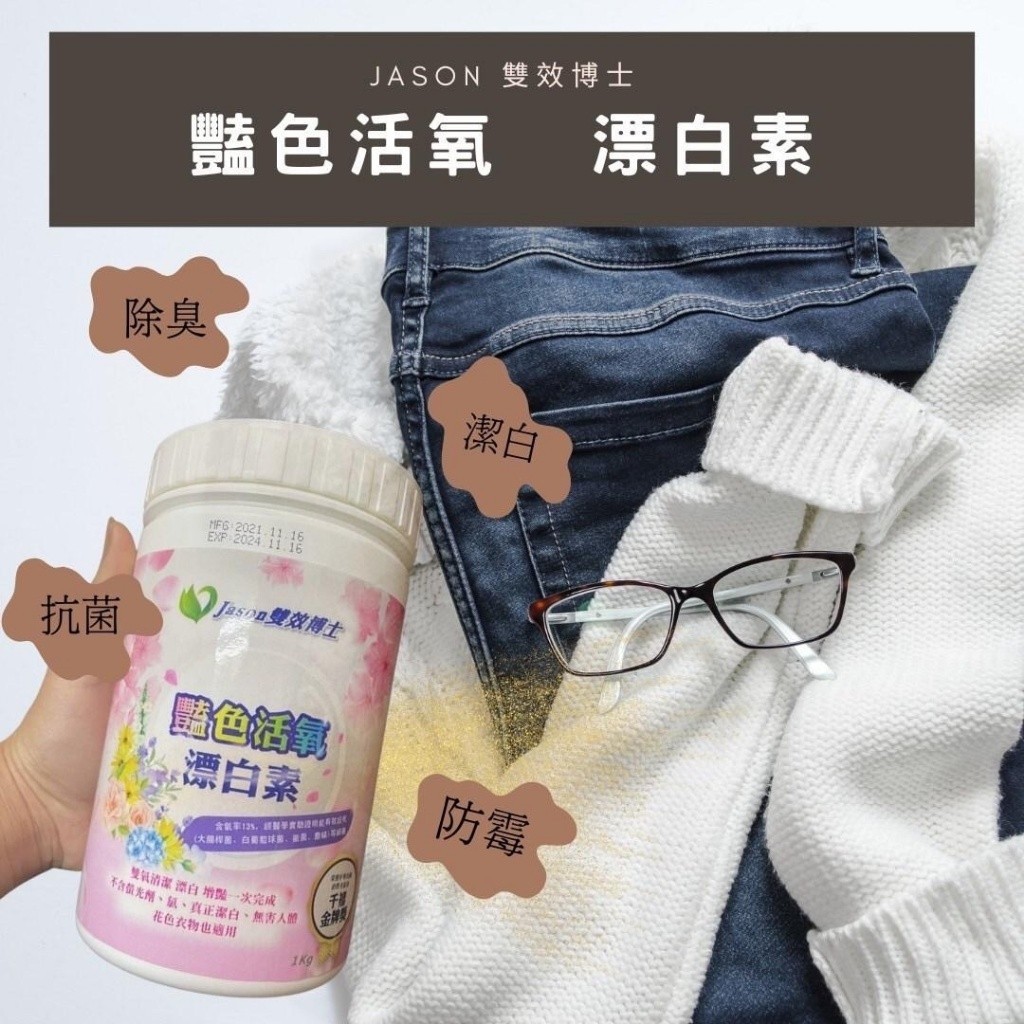F12E-9648 台灣製 Jason雙效博士 豔色活氧淨白素1kg(抗菌成份