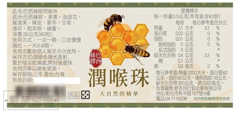*巴西蜂膠潤喉珠30g/罐(60粒)