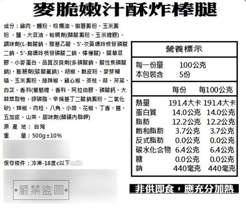 *麥脆嫩汁酥炸棒腿500g(約5-6支)/包