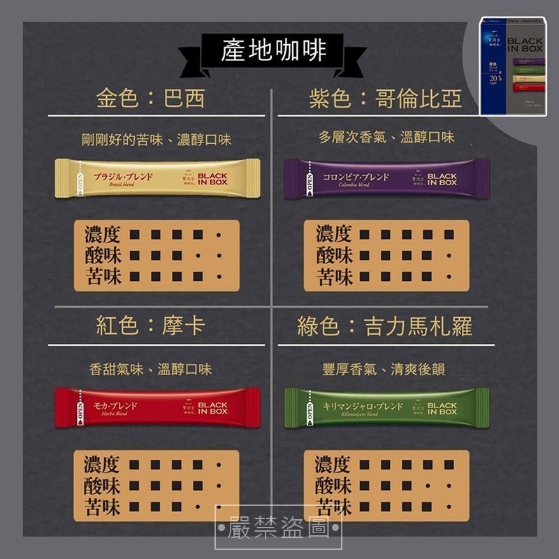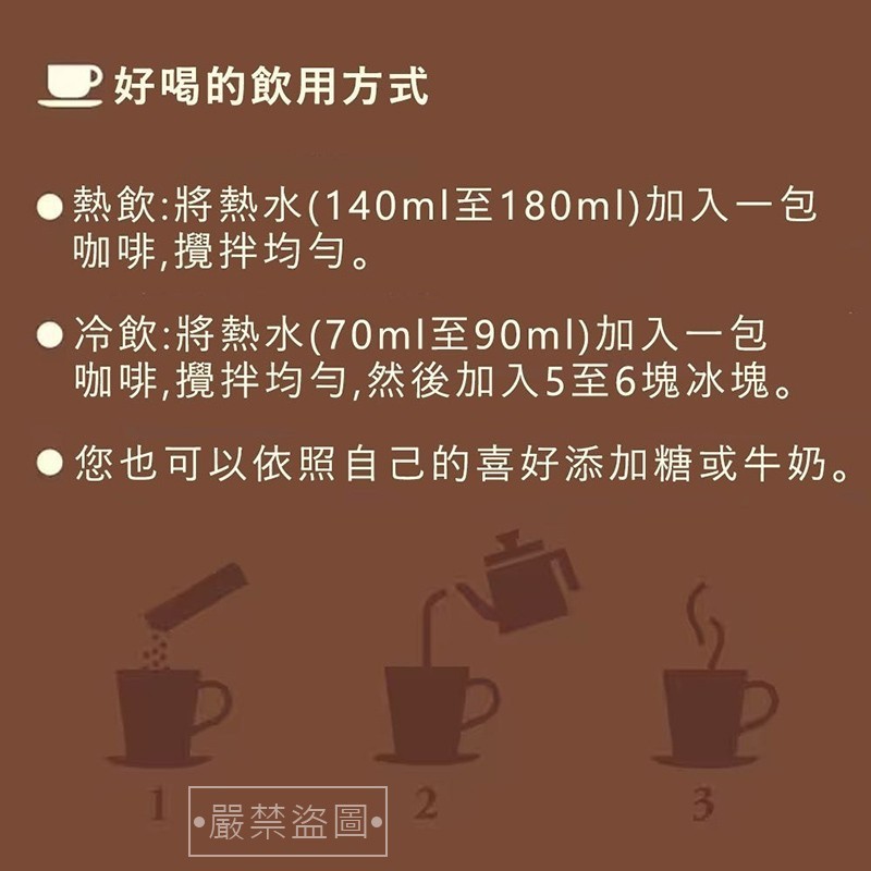 將嚴選過的咖啡豆製成一包包即溶咖啡🉐