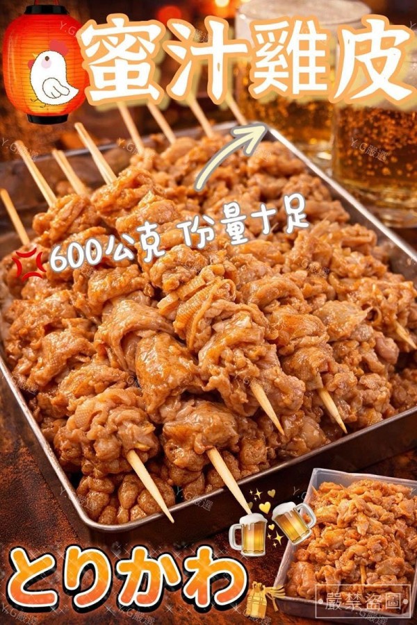 ✨嚴選雞皮,經過獨家比例蜜汁醃漬,甜而不膩、鹹香帶勁