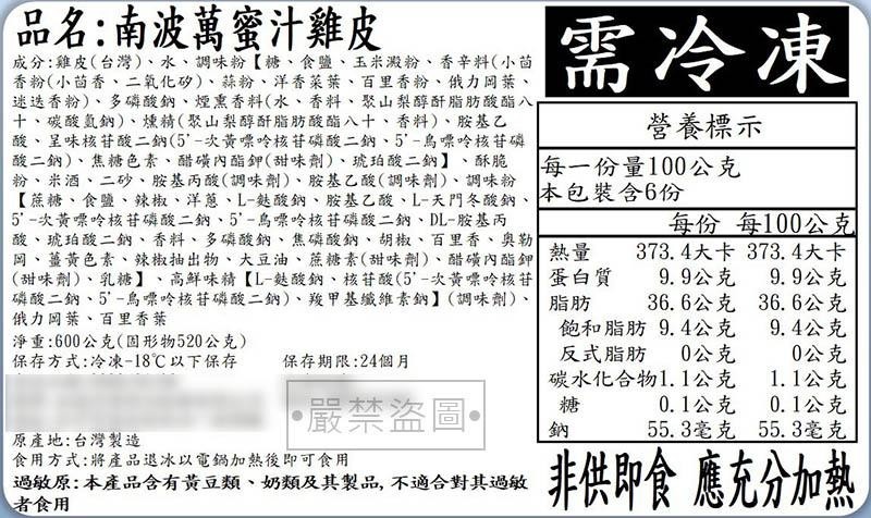 *南波萬蜜汁雞皮(生醃)600g/包