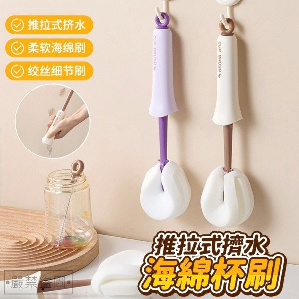 *預購團-推拉式擠水海綿杯刷-不挑色