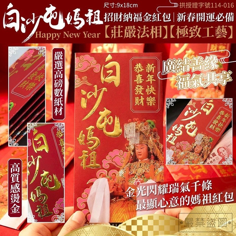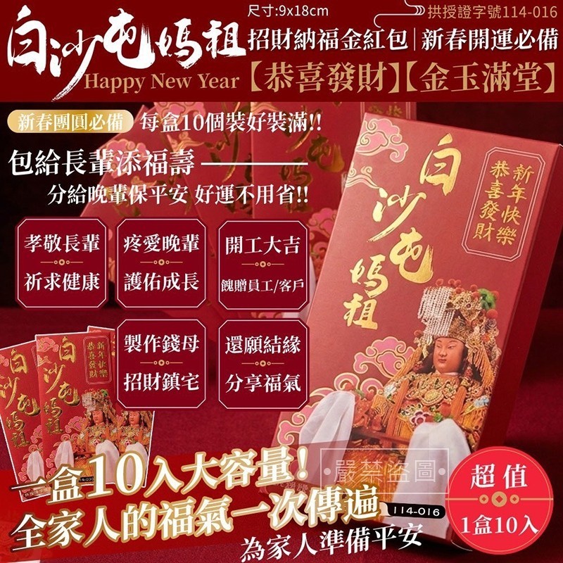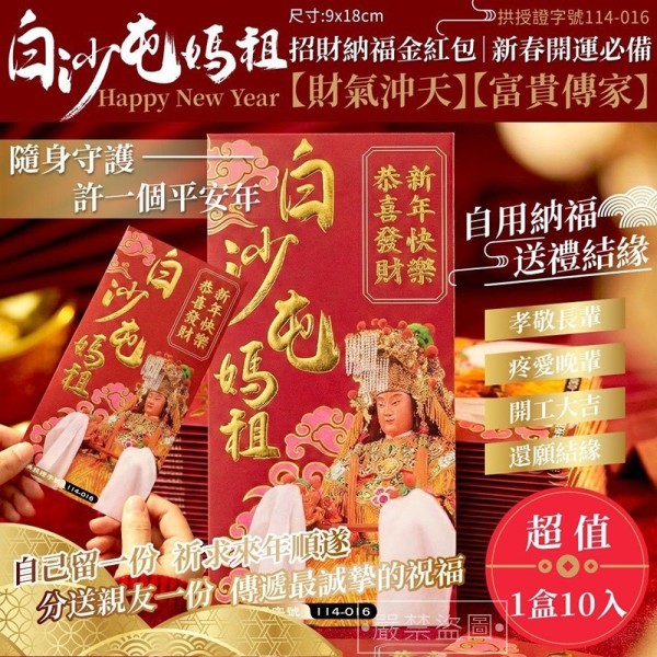 *【年節團】白沙屯媽祖招財福氣紅包10入/盒