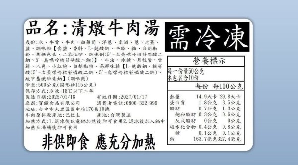 🌟清燉牛肉湯 500g±10g(固形物約100g) $99
