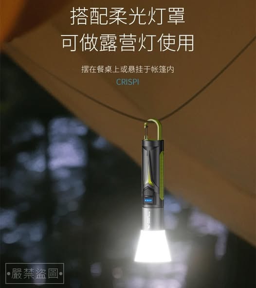 搭配柔光燈罩,可做露營燈使用